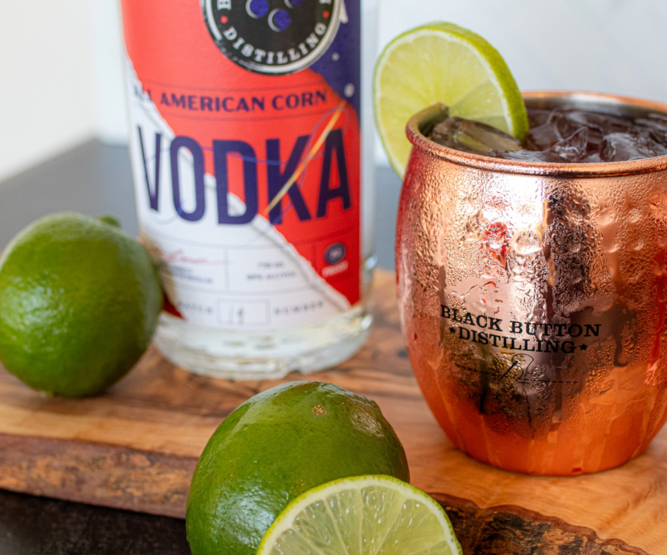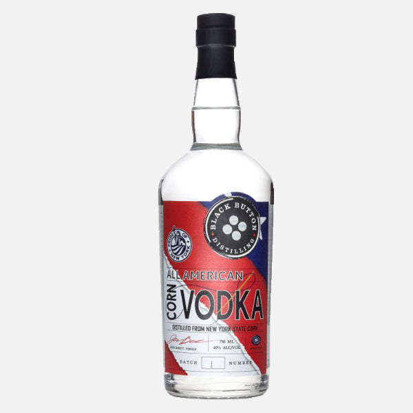 Our All American Corn Vodka is made in small batches to maintain a crisp, light taste and clean quality, making it the perfect addition to many classic cocktails, including spicy Bloody Marys, zesty Moscow Mules, citrusy Screwdrivers, and bold Martinis. All American Corn Vodka is made from 90% corn and 10% malted barley. Those grains come from Edgewood Farms in Groveland, NY, just about 30 minutes from our distillery. You may be wondering, "Why corn?" The truth is, vodka can be made from almost any crop, from wheat and rice to potatoes and even fruit. "Black Button" chose corn to bring out the vodka's flavor and depth in the cocktail.